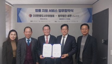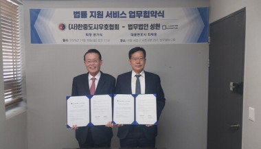 한중도시우호협회(회장 권기식)는 5일 오전 서울시 서초구 서초대로 소재 법무법인 성현(대표 변호사 최재웅) 사무실에서 법무법인 성현과 한중 법무 서비스 교류를 위한 업무협약을 체결…
